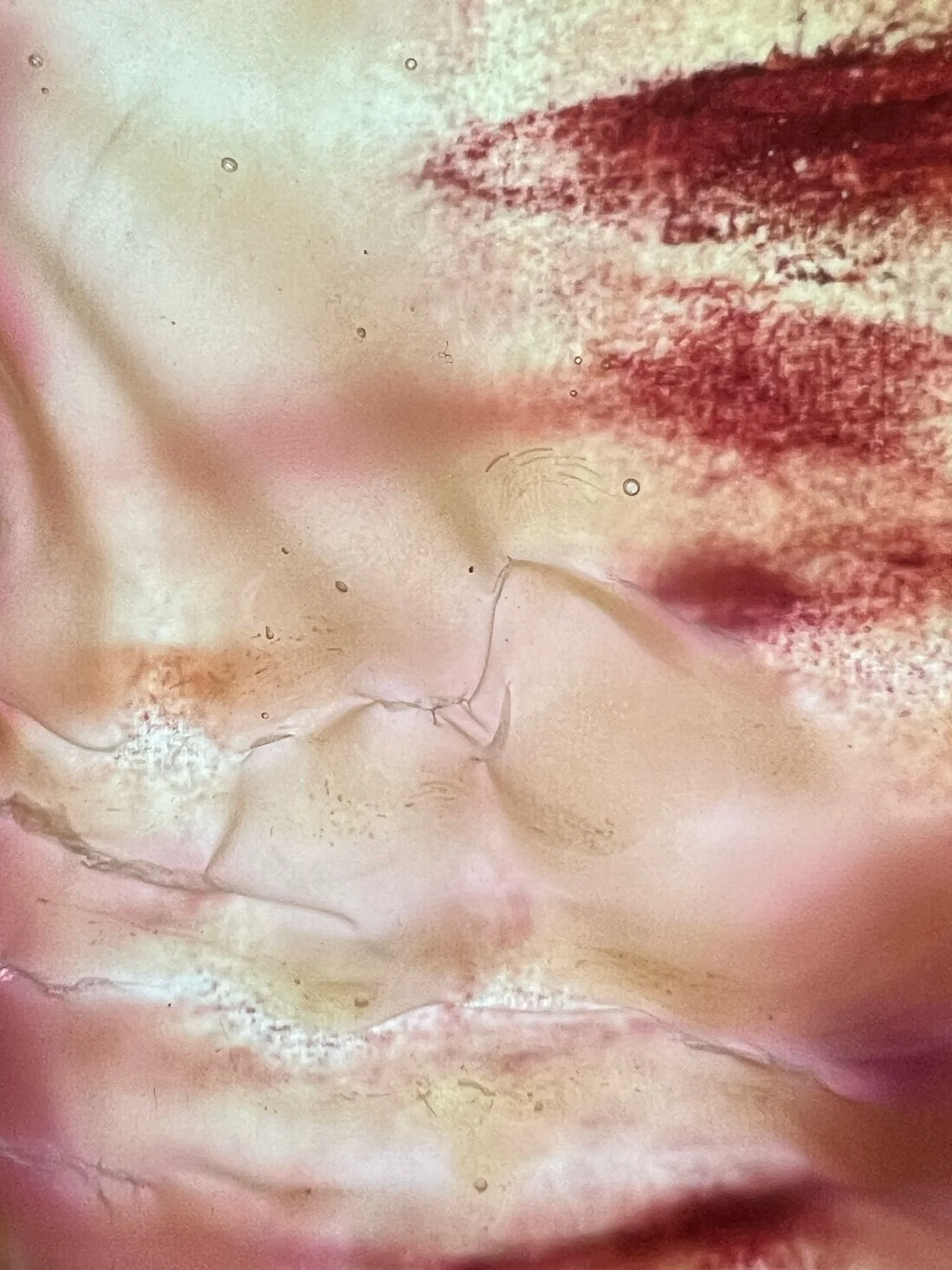 This series is a collaborative artwork exploring the intersections of skin, identity, and fertilization through a layered material process. One artist, whose practice examines skin as a site of identity, created a skin-colored screen print, symbolizing the body as both a physical and cultural landscape. The second artist, whose work investigates fertilization and identity formation, introduced etched latex, evoking biological processes of conception, mutation, and transformation. The latex, stretched and marked, mimics both the fragility and resilience of skin, embodying themes of imprint, inheritance, and genetic fusion. This multilayered piece was then photographed, further abstracting the tactile qualities of the work and blurring the boundaries between surface and depth. The result is an intimate yet universal meditation on how identity is inscribed, altered, and transmitted across generations.